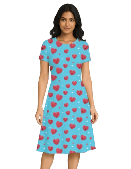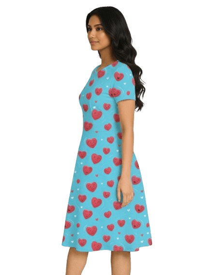 Fit-and-Flare Design: The classic A-line silhouette is designed to gently shape the body at the waist before flowing into a graceful flare, offering a look that is both professional and playful.
